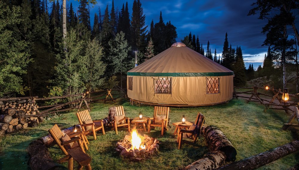 Set out for your high mountain yurt experience, one of their most elite a la carte adventures and a spectacular additon to any all inclusive vacation at Brush Creek Ranch. On this exciting private luxury camping adventure, an expert Wrangler and an outdoor guide lead the way throughout your trip, imparting proper camping techniques, so you can feel entirely at ease. Brush Creek is where rusticity meets luxury.Yurts are round, semi-permanent structures that are sturdy enough to sustain harsh weather conditions and provide comfortable shelter year-round. This 700-square-foot, four-season, circular tent features luxe glamping adventure comforts and is exclusively yours for a single, special night. Saddle up for a horseback ride to Jim’s Draw Yurt, located on the far reaches of the ranch, and then enjoy the freedom of private outdoor activities.