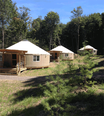 Completely surrounded by more than 700 acres of State Forest lands, the Savage River Lodge offers privacy, serenity, unparalleled relaxation and numerous of opportunities for fun. It's a unique atmosphere...peaceful, relaxing, inviting. Add excellent food, an award-winning wine list, and the Lodge's extraordinary hospitality!There are no other yurts like these yurts! Each of the eight, 30-ft diameter, yurts will has a private deck, sitting room, king-sized bed with luxury linens, a private bath with an extra-large shower, a beverage center and a breakfast nook for partaking in our famous, daily deliveries of muffins and orange juice. If you still don’t know what a yurt is, it is a nomadic structure traditionally used in the steppes of Mongolia, consisting of a round moveable tent with a bent-frame roof. Best of all, each yurt features a gas-log fireplace in addition to the Warmboard radiant floor heat!