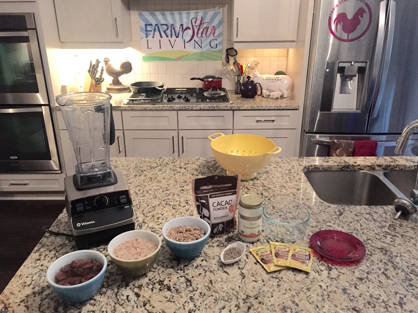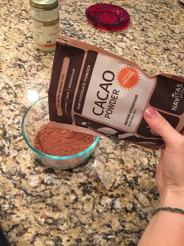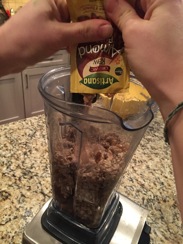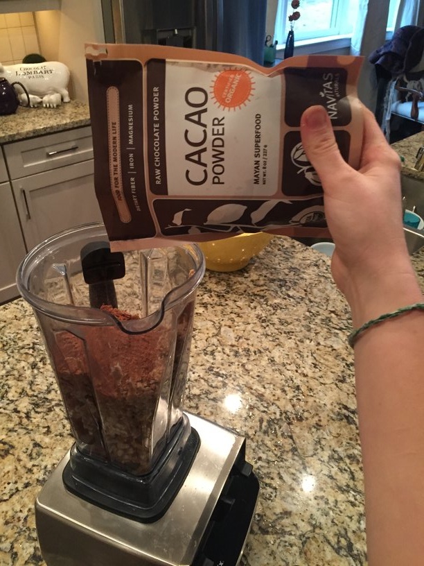3. Then continue you to add everything in the food processor - 1/2 cup dates, 4-6 tbsp coconut oil, 2-4 tbsp cacoa powder, 1/4 cup almond butter, 2 tbsp almond milk and 4-6 pinches lavender buds. Now blend it all up and get ready for the fun part to begin!