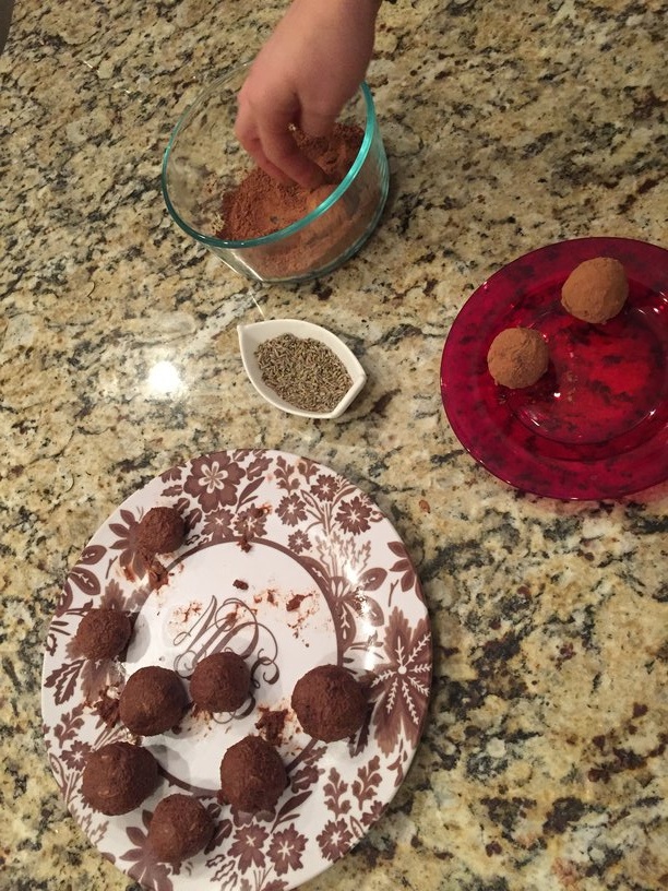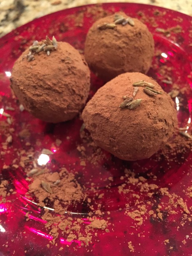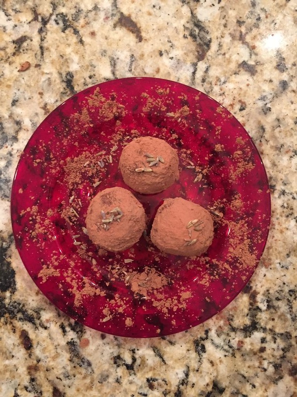 5. Once you have them all rolled up it's time to whirl them around in raw cacao powder for the perfect, dusty finish! To be extra fancy sprinkle a few lavender buds on top!
